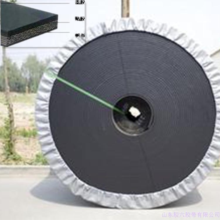 2、本产品适应不同使用条件的要求,可制成包边式、开边式、中梯型、边梯型等不同结构 规格 (1)带芯材质:涤棉交织布TC-70型、全棉帆布CC-56型 (2)带宽:300mm-3000mm (3)布层:1-12层 (4)覆盖胶厚度:工作面:1.5-10mm 非工作面:0mm-6mm。 这种输送带用纤维织物作带芯,用一般橡胶作覆盖材料,表面光滑平整。带芯是由棉、尼龙、聚酯或维尼纶等纤维编织成的分层或整体织物。棉纤维是应用最早的带芯材料,易与橡胶粘合,湿态时强度略有提高,但破断强度低〔大多在56牛/(毫米·层)左右〕,防腐防霉性差,使用日渐减少。