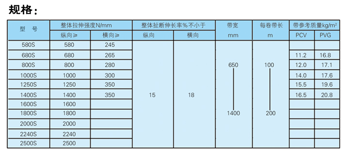 橡胶面整芯输送带(PVG型),用于倾角20度以下潮湿的环镜。